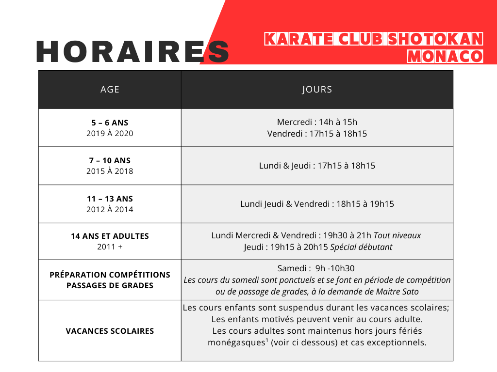 Les cours ont lieu au gymnase de l’école des Révoires : 63 ter, Bd du Jardin Exotique 98000 Monaco – Parking public dans le bâtiment – 1h gratuit